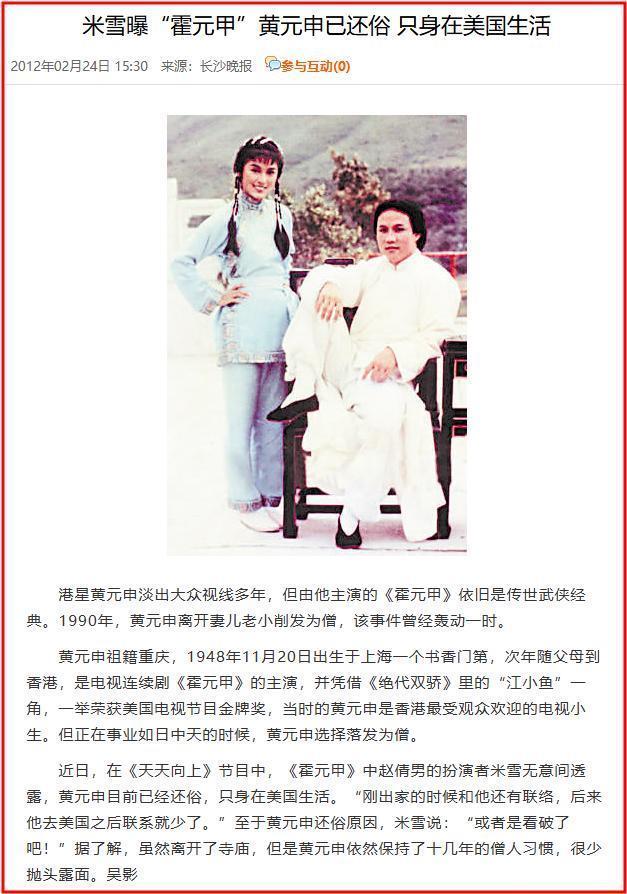 彼时,港媒报道称黄元申是因为赵雅芝才出家。实际上他出家和赵雅芝没有关系。