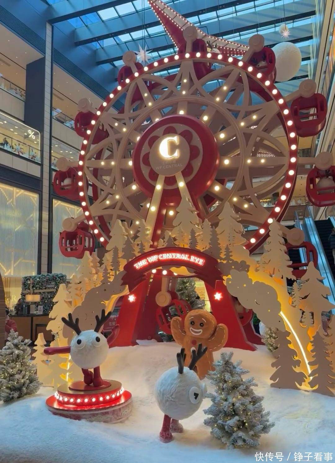 最近逛三里屯,真被那股节日劲儿戳中了——红帽子、暖灯、摩天轮一圈圈转着亮起来,随手一拍都像电影截图。夏露一家就在这时候溜达着来了,皮草一披、小红帽一戴,背影利落又喜庆,差点以为撞见哪部港片里的富家千金。
