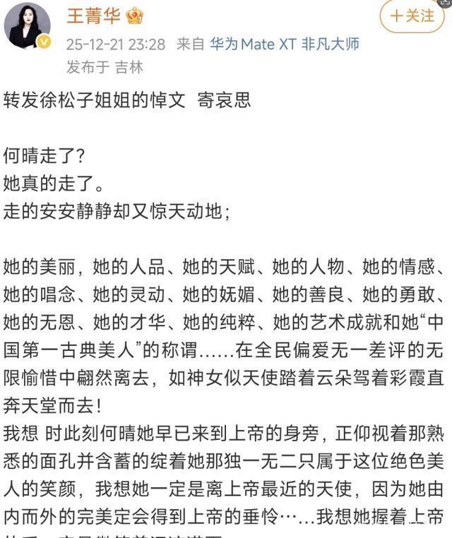 让我们看了感到无比的痛心,看到她的这篇文字,何女士的笑貌仿佛又出现在了我们的眼中, 可以看出徐女士对她的离去感到无比的痛心,甚至将她称作是“无一差评”的女演员,